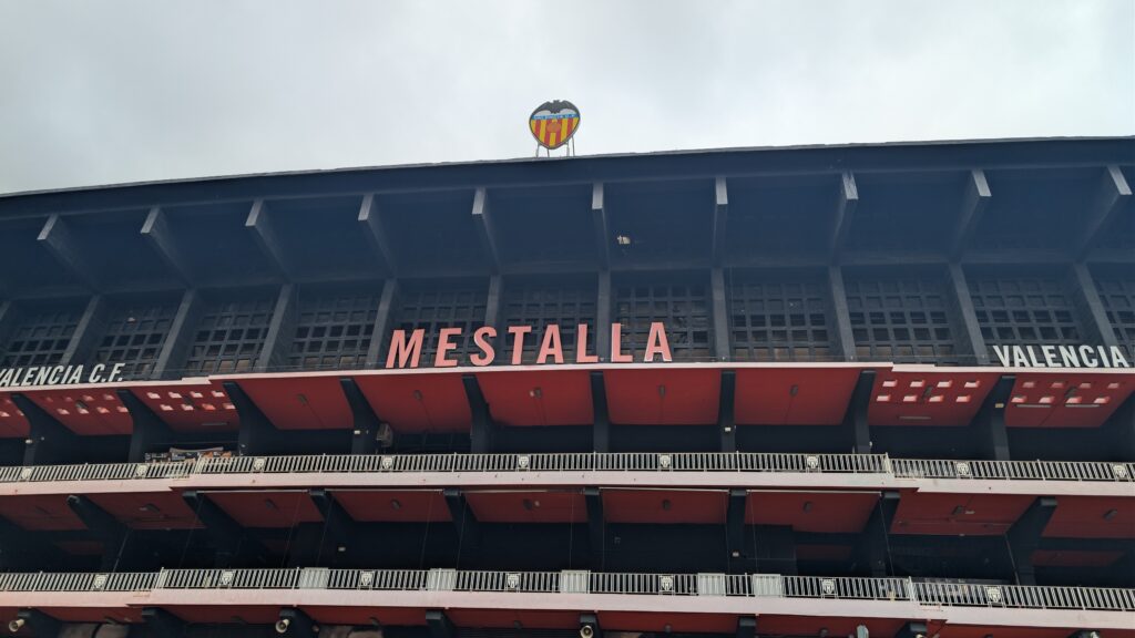 Utunk Valenciában, rögtön a Mestallában kezdődött. Már pénteken bejutottunk a stadionba egy „tour” keretében, így még a meccsnap előtt testközelből ismerhettük meg a Valencia otthonát és történetét. A klubot 1919-ben alapították, a Mestallát pedig 1923-ban avatták fel. Az eredeti stadion 17 ezer néző befogadására volt alkalmas, később 25 ezerre bővítették, az ötvenes évek nagy átépítése után pedig már 45 500 férőhelyes lett. A stadion történetét a spanyol polgárháború, az 1957-es valenciai árvíz és több felújítás is formálta, ma pedig több mint 49 ezer néző fér el benne. A tour egyik legérdekesebb része éppen az volt, hogy nemcsak egy ikonikus stadiont jártunk be, hanem egy olyan helyet, amelyen keresztül szinte végig lehet követni a klub egész történelmét. 1969 és 1994 között egyébként Estadio Luis Casanova néven futott, mielőtt visszakapta a ma is használt Mestalla nevet.
