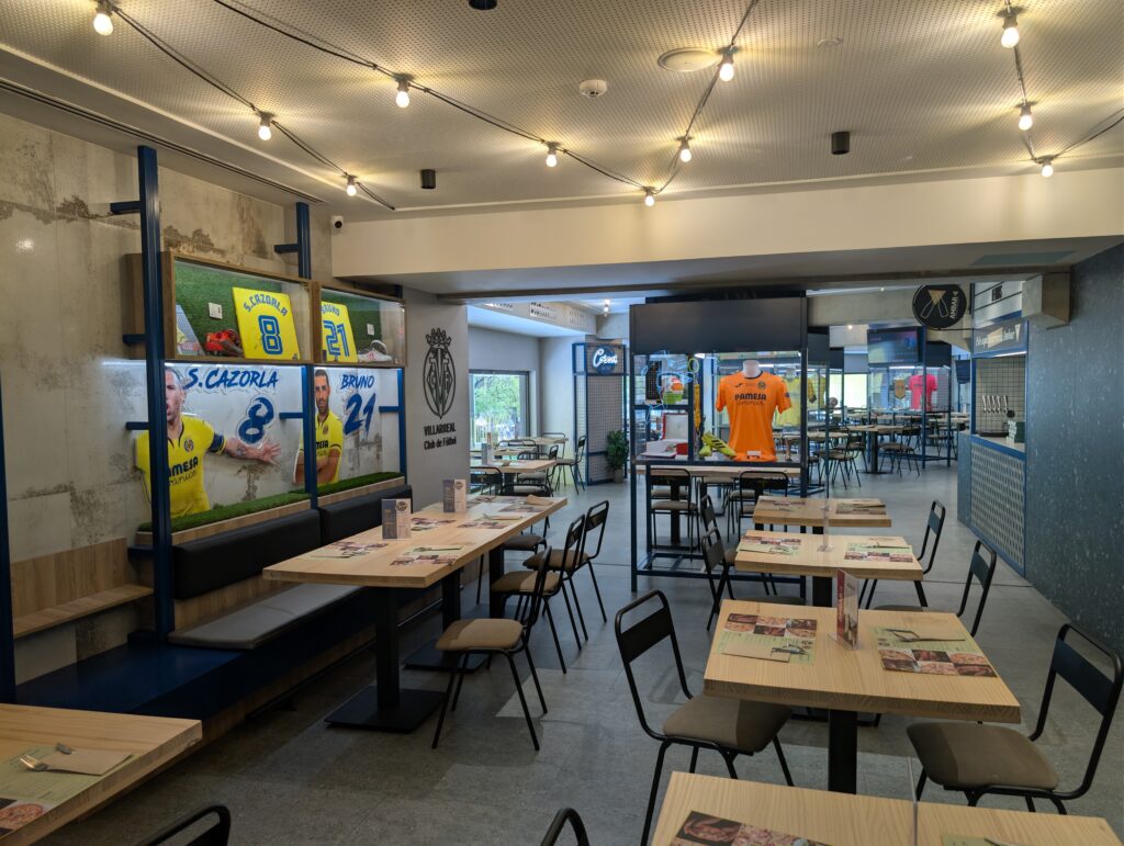 Mi is itt ragadtunk meg, és a klasszikus stadiontúra helyett inkább a stadionban található Corner Sports Bar felé vettük az irányt, amely hivatalosan is az aréna része, a 29-es kapunál található, és teljesen át van itatva Villarreal-hangulattal. A falakon mezek, klubemlékek és sárga relikviák mindenütt, szóval tulajdonképpen már ez önmagában felért egy mini stadiontúrával.